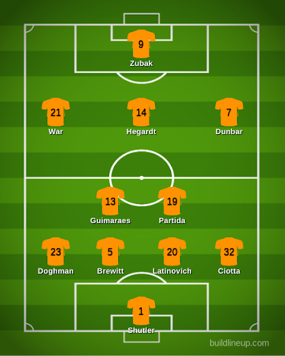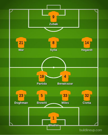 Larry gets us going with a standard 4-2-3-1 lineup that does have a good mix of veteran with youth. For one, Ashton Miles sees a return to the senior team lineup and will line up alongside Nicola Ciotta. As such the midfield is the most interesting with War and Hegardt lining up on the outside of Sylla.